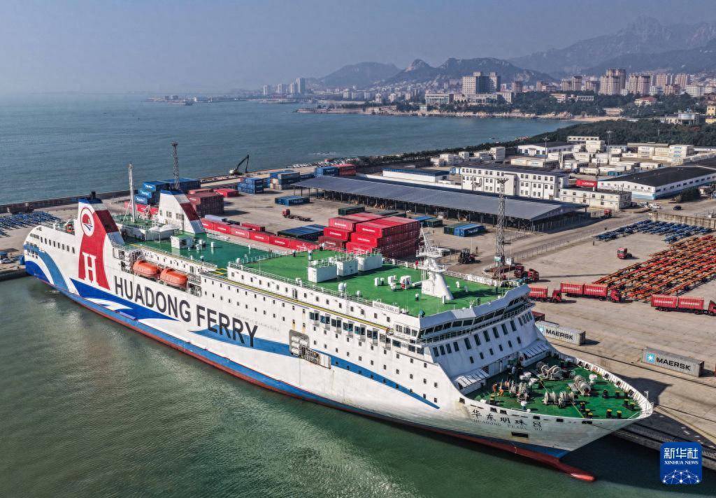 11月1日在山东省荣成市石岛管理区石岛新港口岸拍摄的外籍客货滚装船(无人机照片)股票配资开户会员。